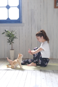 ドッグヨガは、ヨガのポーズをとりながら、愛犬の呼吸や温もりを感じたり、おやつを使って遊んだり、ドッグマッサージをしたりなど、五感を使い、ワンコたちに100%集中してワンコたちとの時間を大切にしていきます。